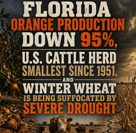 The post Florida Orange Production Down 95%, U.S. Cattle Herd Smallest Since 1951, And Winter Wheat Is Being Suffocated By Severe Drought appeared first on The Economic Collapse.