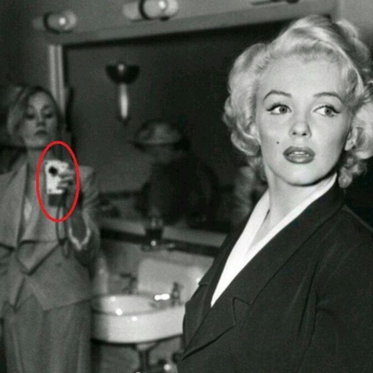 Marilyn Monroe is said to have been photobombed by a time traveler as well and I’m here to debunk it. She wasn’t. I am showing you the picture of Marilyn in question. A woman can be seen taking a picture of Monroe in a bathroom. If she is real then nobody seems concerned in the slightest that her reflection is absent, making her a vampire. The claim is that she is holding up a cell phone and that no such technology existed in the 1950’s or 1960’s. That much is true. They didn’t. Do you know what else didn’t exist during the Eisenhower or Kennedy administrations? Photoshop. And that’s Photoshopped.