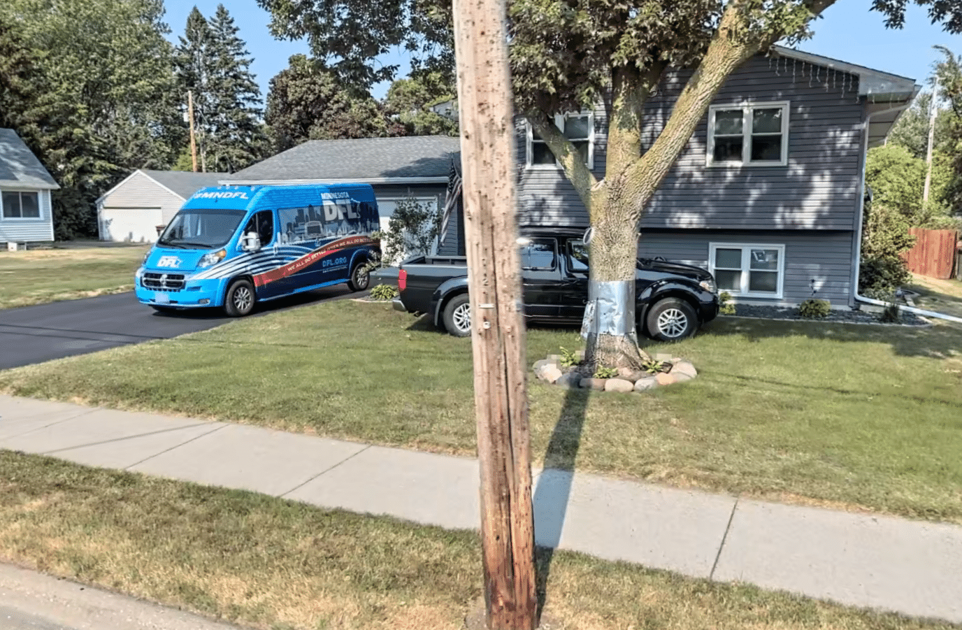 An undated archived street view image on Apple Maps shows a Minnesota DFL-emblazoned van parked in the driveway of Edwards’ home. Property records show Edwards has owned the home since at least 2004. The property is listed as a “disabled vet homestead” with a significantly reduced property tax rate, which Minnesota allows for qualified veterans.